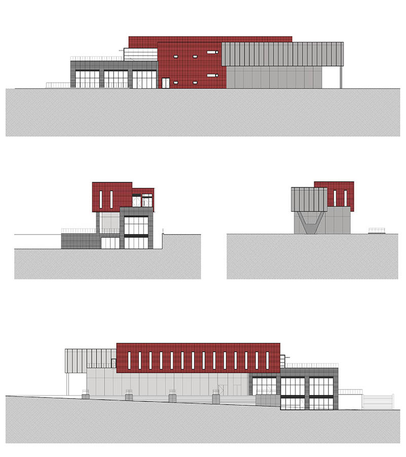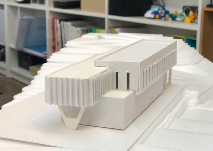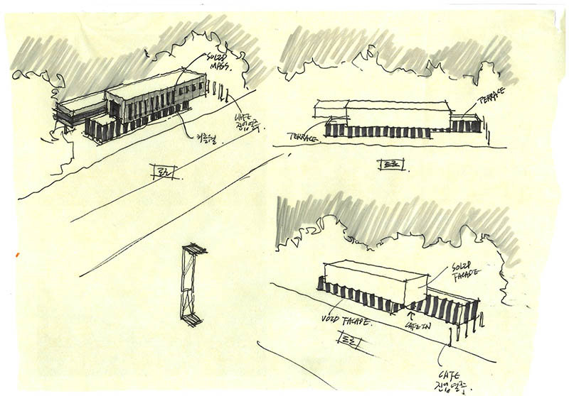 도로를 따라 길게 형성된 대지 축으로 매스를 구성하였으며,